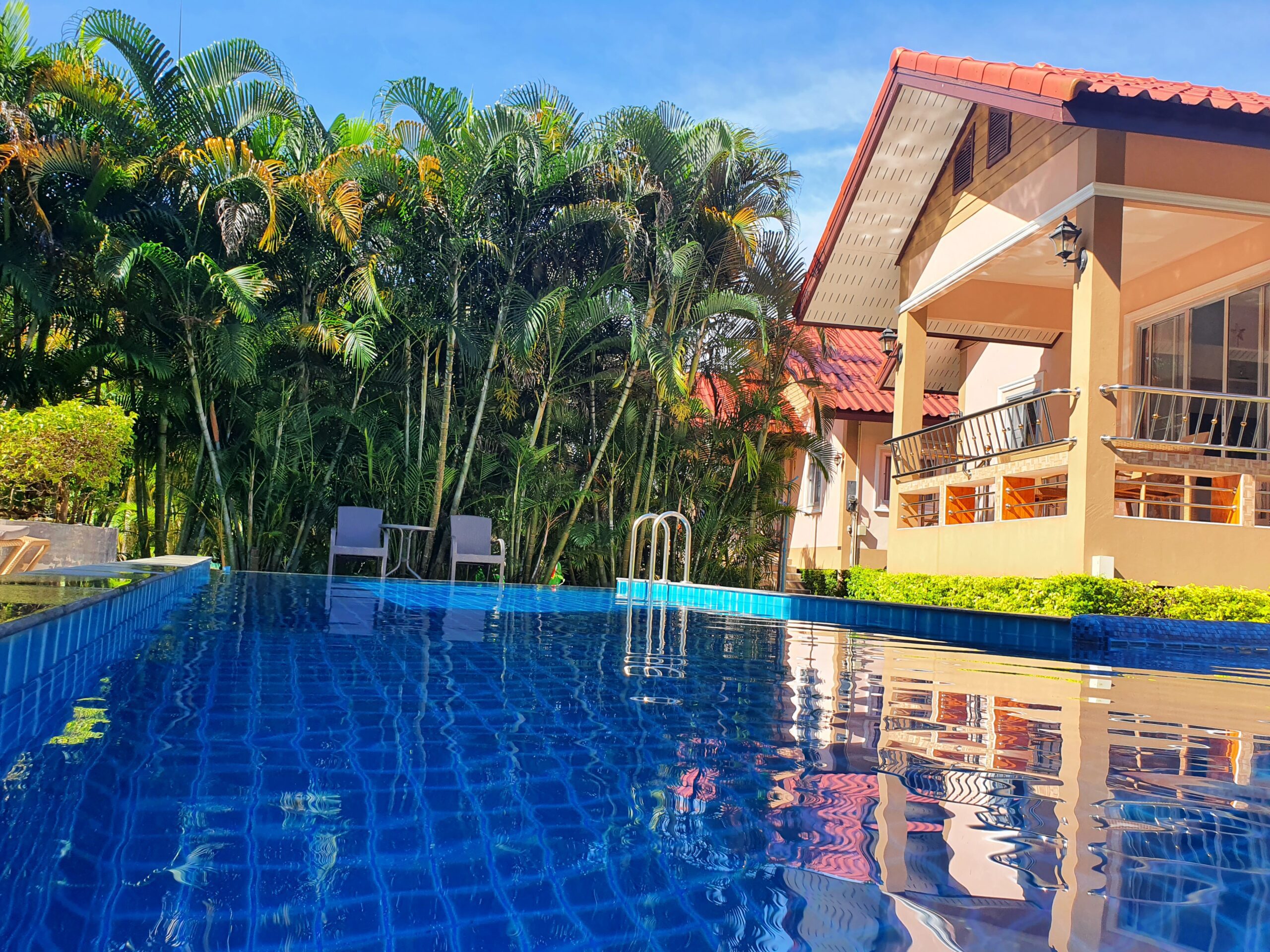 There is a food and drink delivery service in the months of May to September from our own restaurant Bananas. Up to 10 litres of chilled drinking water are provided free of charge every day. Since we get our water from a specially tapped volcanic lake from a depth of 60 m, the water from the pipes (bathroom and kitchen) as well as in the pool is drinking water quality. Our Bananas Restaurant is 300 metres away. It is 100m to the popular Cafe FIG, 300m to the town center of Kai Bae and 200m more to the beach.
