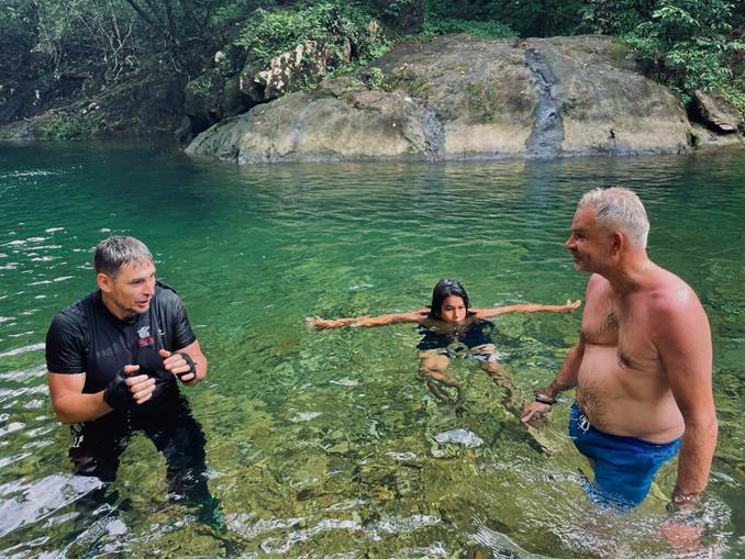 After the training you can choose the tour that fits you best: 20 minutes short track, 60 minutes basic jungle track and 90 minutes full jungle discovery track with mountain streams swimming and sightseeing.