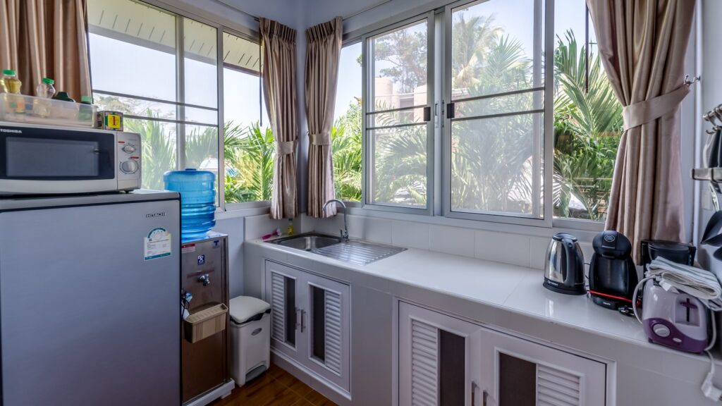 • Cooking pots, pans, pots. Rice cooker, dishes, cutlery, glasses, etc., everything is included